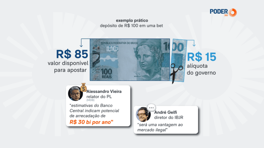 A alíquota de 15% incidirá “sobre as transferências de recursos realizadas por pessoas físicas a operadores de apostas, por meio de instituições financeiras ou instituições de pagamento”, segundo o texto aprovado no Senado em dezembro. A proposta, que passou por modificações na Casa Alta, retornará agora para análise da Câmara. Leia a íntegra (PDF – 175 kB).